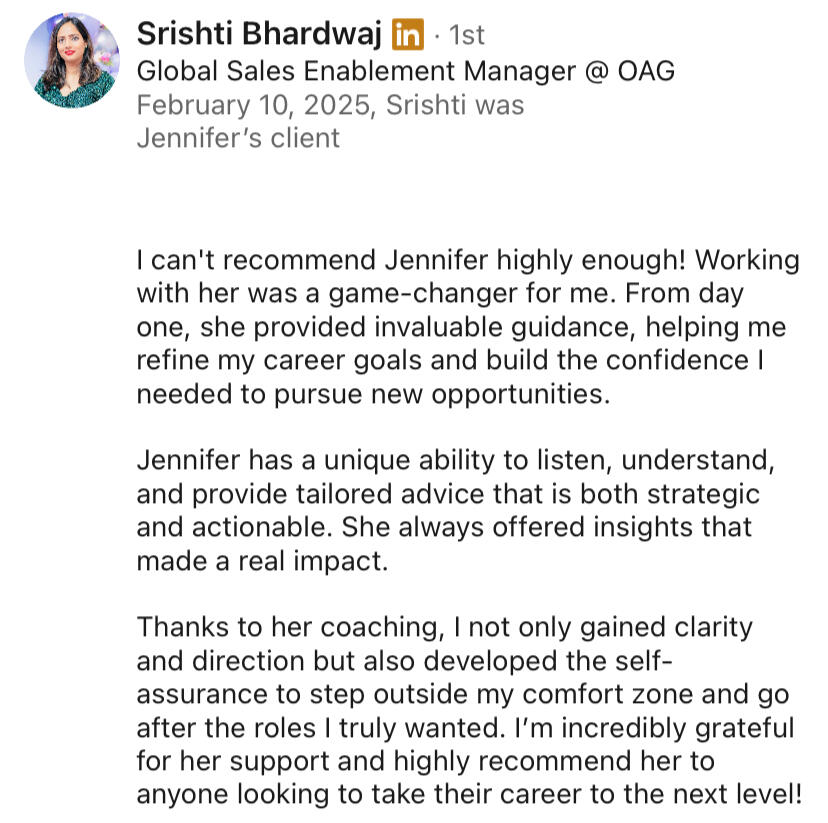 I started my career back in 2012 with incredible drive, but no real plan for success. As a recruiter, I was really good at helping others land their dream roles. But when it came to my own career? I wasn't dreaming big enough.Looking back, I was playing it safe. Sure, I made moves for better titles or bigger paychecks, but I was following the traditional playbook instead of writing my own. Every new role would feel exciting for a few months, but that nagging feeling of 'there has to be more than this' would always creep back in. (Sound familiar?)Then came my turning point. I decided to approach my career with the same strategic mindset I used when helping others level up their careers. Instead of just reacting to opportunities, I started creating them. When I finally decided to bet on myself and approach my career with intention, everything shifted.This journey taught me something powerful. The difference between settling for good enough and building an exceptional career isn't just about skills or experience but it's about having the right strategy and the confidence to go for it.